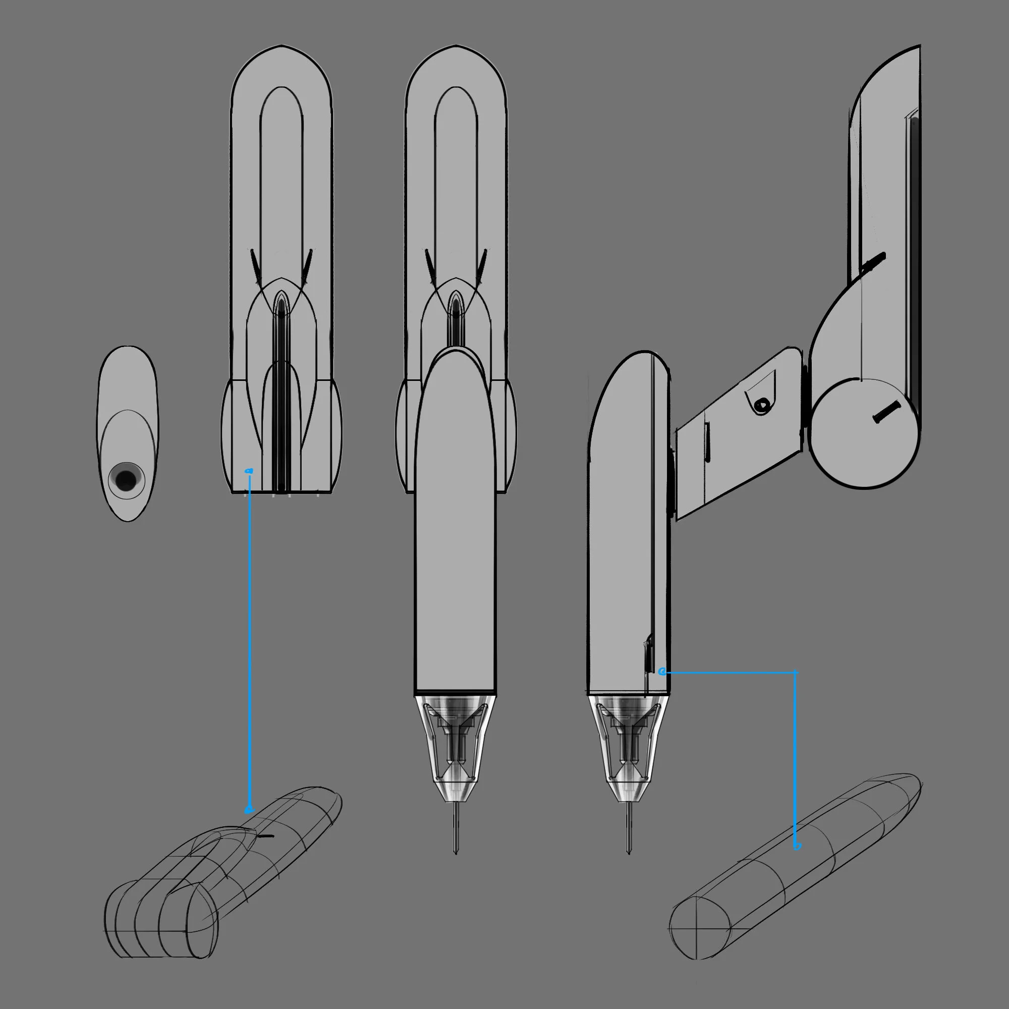 3D printing nozzle explorations. I thought the nozzles could have a couture feeling to support the premium nature of the brand. The housing for the mechanical aspects could be sensual, not really representative of their function.... perhaps blatantly sexual.