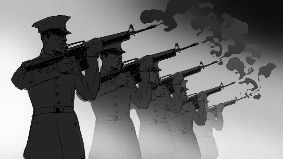 Concept design of a bronze sculpture whose surface is composed of historical battles that have defined the USMC.